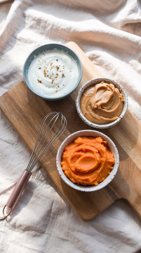 Peel, cook, and mash ¼ cup of apple (remove all seeds apple seeds contain trace amounts of cyanide), then stir into your base. The subtle apple flavor pairs perfectly with peanut butter, and the natural sweetness means you don’t need to add anything extra.