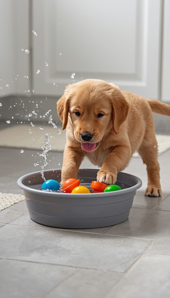 A puppy will definitely enjoy this activity in most cases, particularly when the weather is warm or if they have a very energetic breed that requires more outlets to burn off their energy. Allowing your doggy to play in a non-slip basin filled with a bit of water will stimulate senses, which no dry toys can achieve.