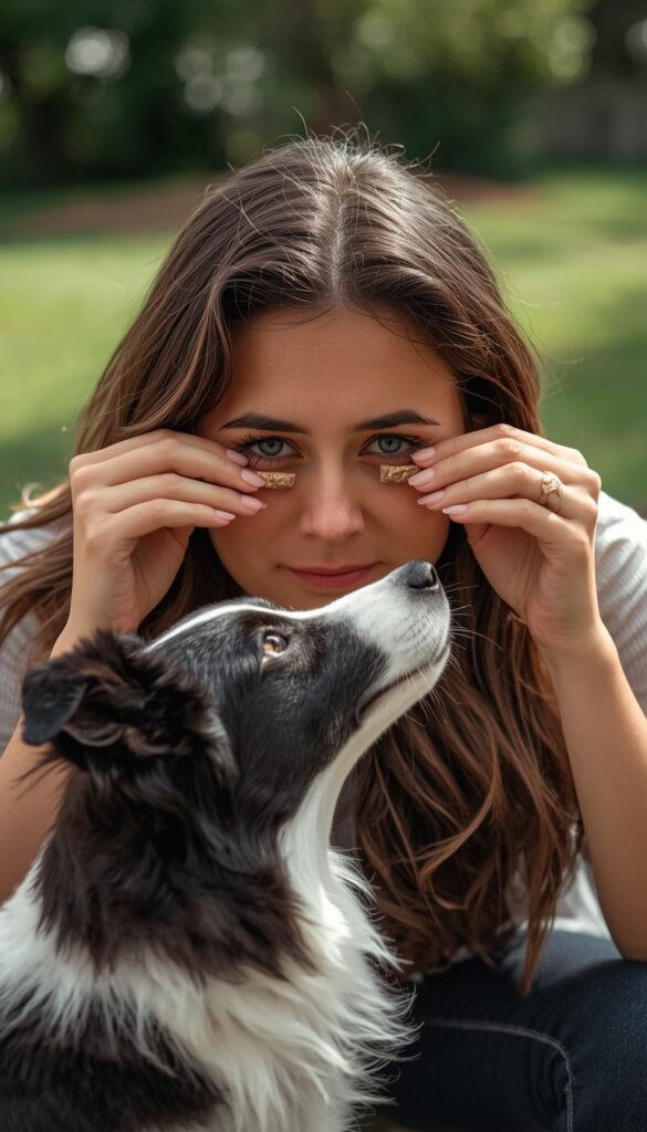 Hold a treat near your face, say “watch me” or “look,” and wait. The moment they make eye contact — boom, reward. Start with just one second of eye contact, then slowly build it up over multiple repetitions.