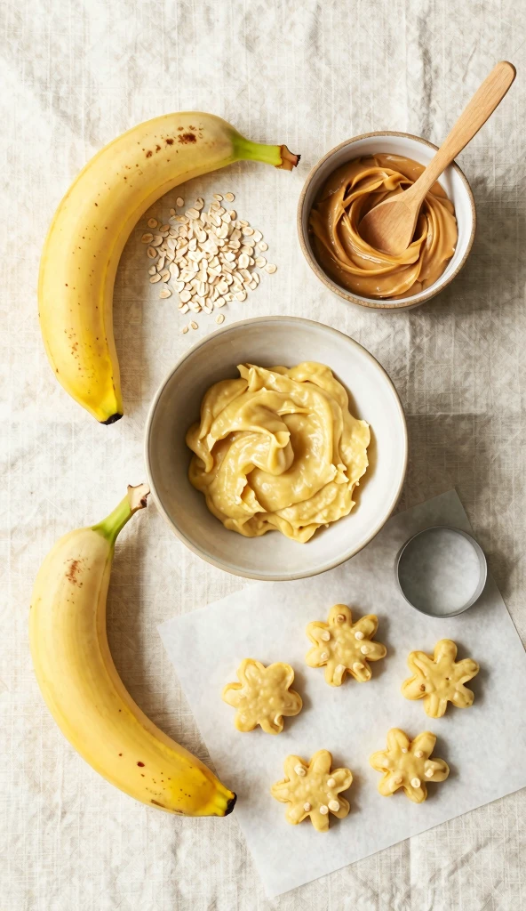 Forget about using peanut butter and only use bananas and oats blended together. Flatten the mixture and cut shapes with a small cookie cutter. They are crispy enough and can be used for training as they are light and not greasy.